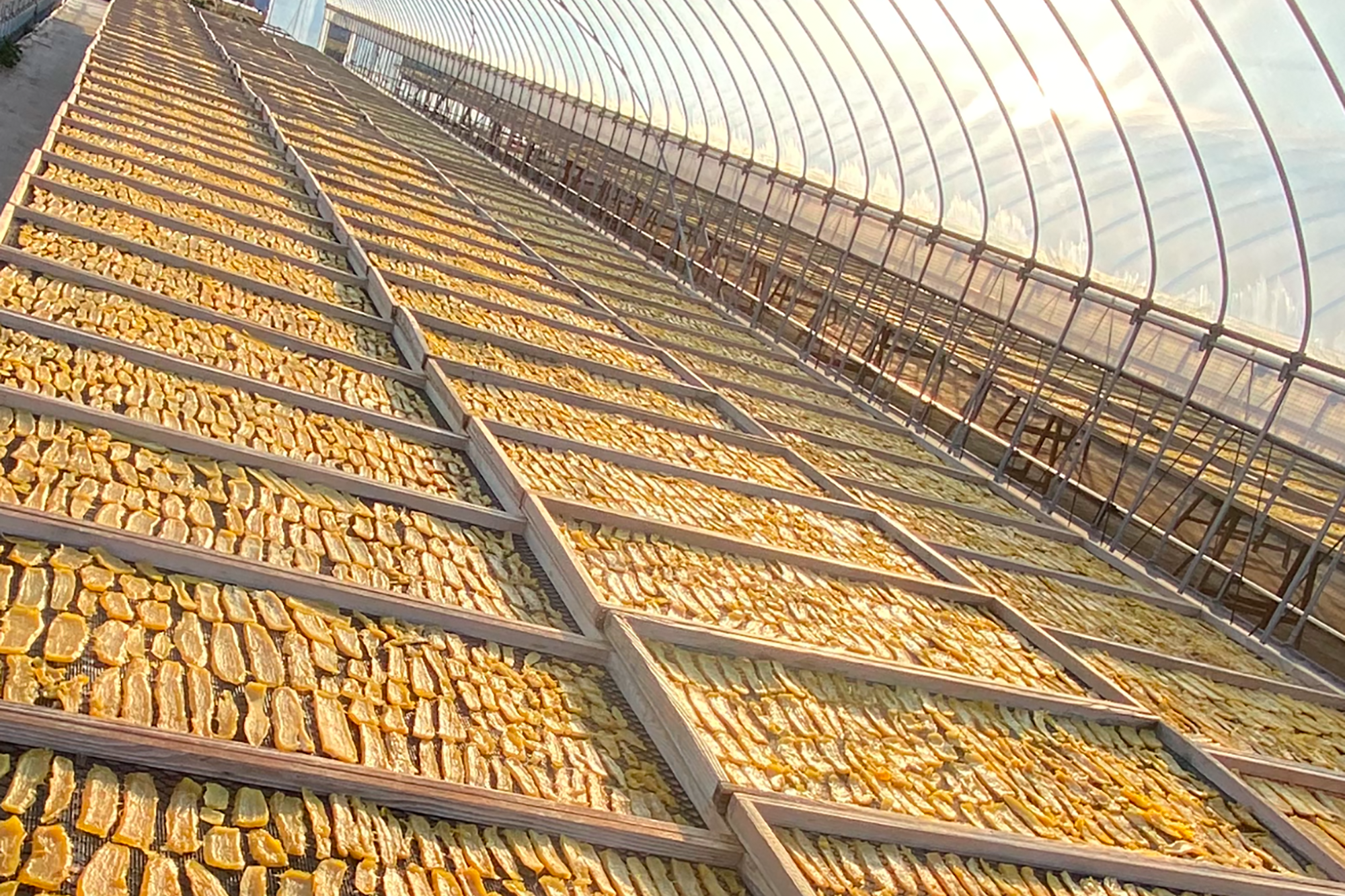 時間をかけ乾燥させる事によって、甘みがさらに凝縮され、自然の恵みそのままの美味しさが生まれます。